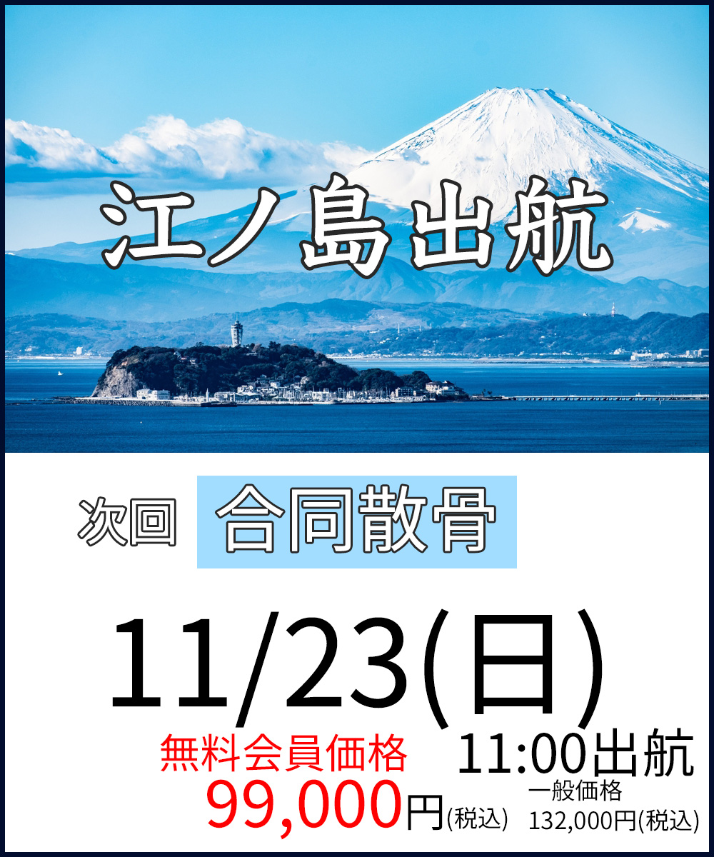 合同散骨と同じく、東京湾と相模湾プランに関しては神奈川県の江ノ島沖・横浜ベイブリッジ沖の出港となります。
